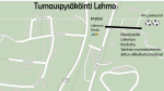 Kuvassa ohje kuinka välttyä ruuhkia pysäköimällä Lehmon koulun parkkialueille ja kävelemällä alikulun kautta urheilukeskuksen kentille!