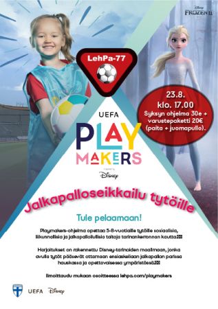 Disneyn innoittama UEFA Playmakers on suunniteltu luomaan viidestä kahdeksaan vuotiaille tytöille mahdollisuuden olla osa jotain hauskaa ja mukaansatempaavaa sekä antaa heille yhteenkuuluvuuden tunteen.