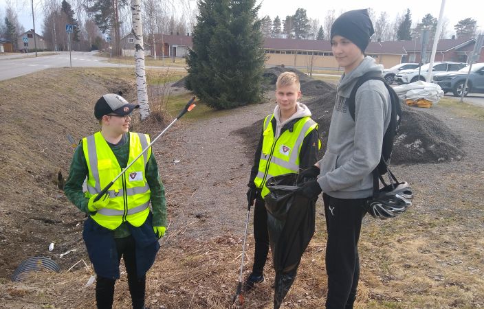 "Ympäristö edellä tässä mennään," pojat tuumivat roskia ojasta onkiessa.
