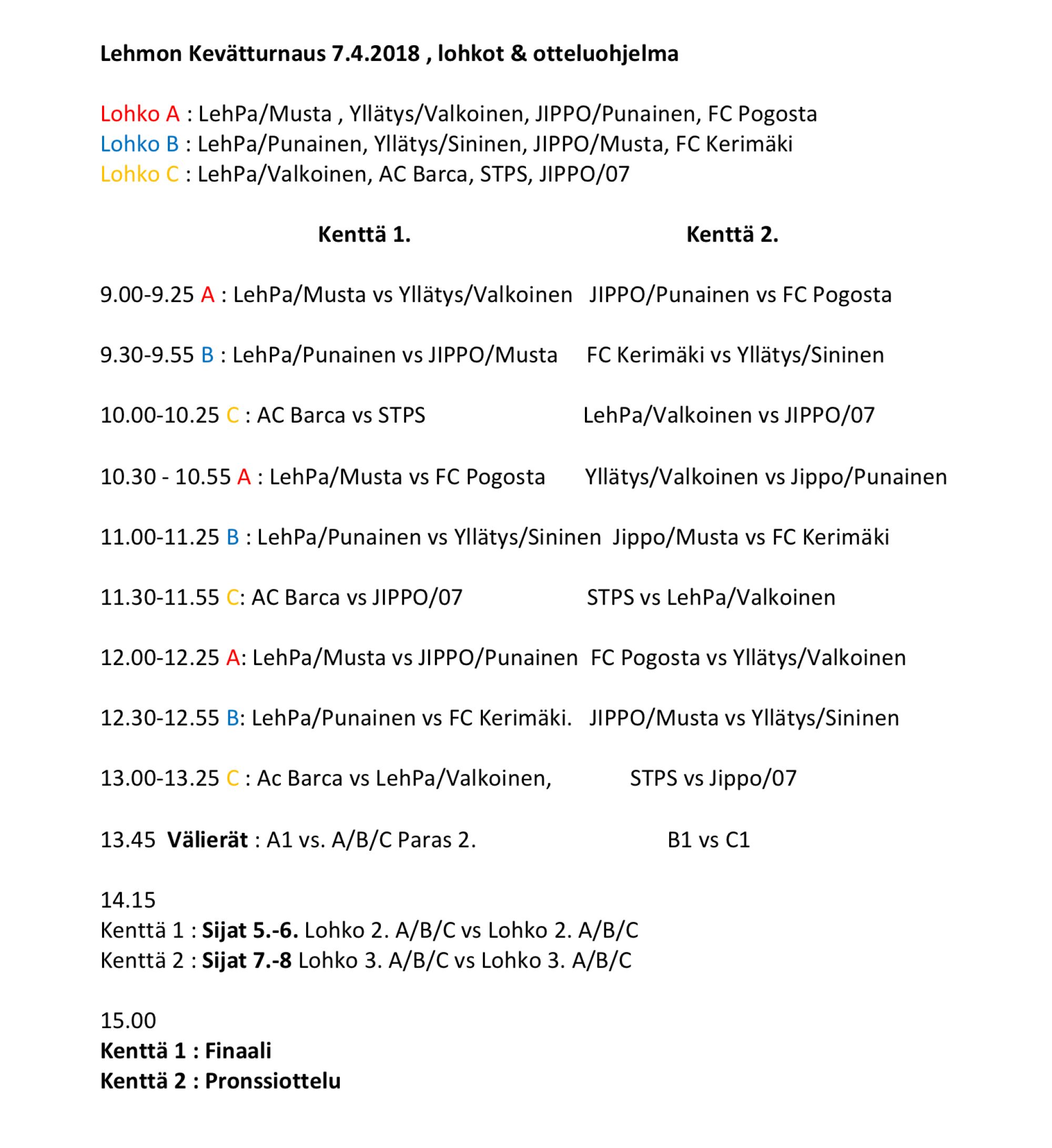 Lohko C : LehPa/Valkoinen, AC Barca, STPS, JIPPO/07